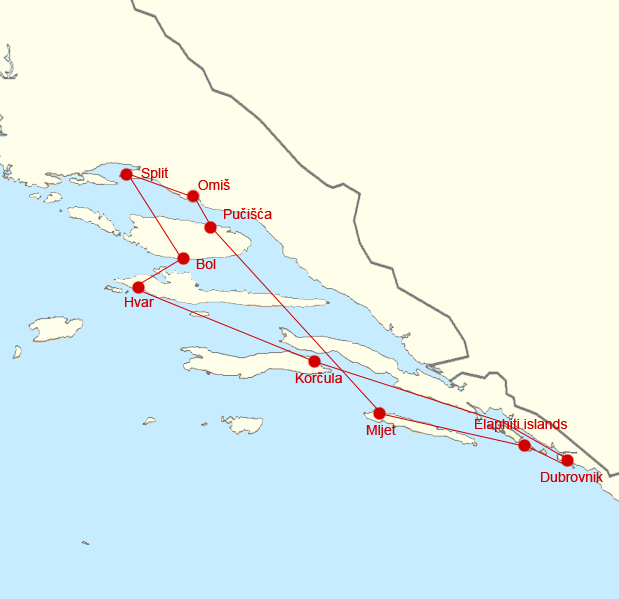 The Itinerary is carefully prepared in order to give you right enough time to experience current history, sufficient time to undertake your own explorations of medieval towns located on South Dalmatian islands, as well as those on the mainland and to have enough time to relax and go swimming.